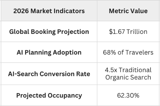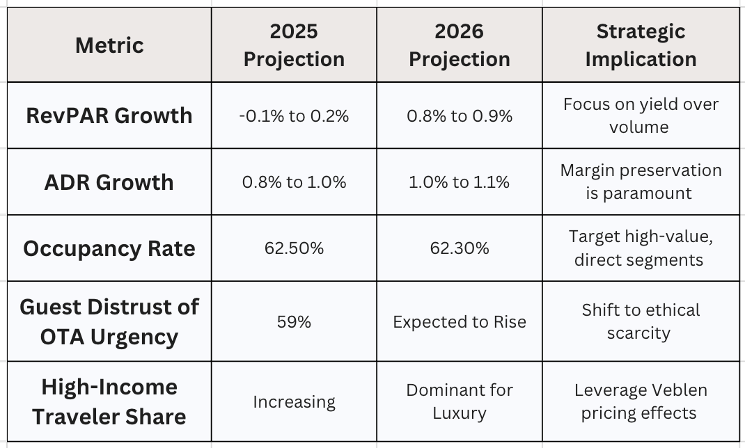 The current market conditions represent what economists call "soft normalization." Following the post covid volatile surges of the early 2020s, the market has matured. While travel intent remains robust, with nearly 90% of consumers planning leisure travel this year, the Revenue Per Available Room (RevPAR) growth has flattened to a modest 0.9%.